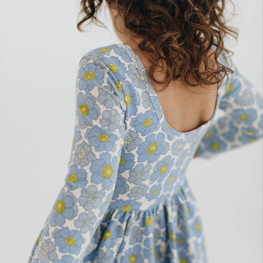 Good Apples Kids 3/4 Sleeve Twirl Dress - Periwinkle Meadow