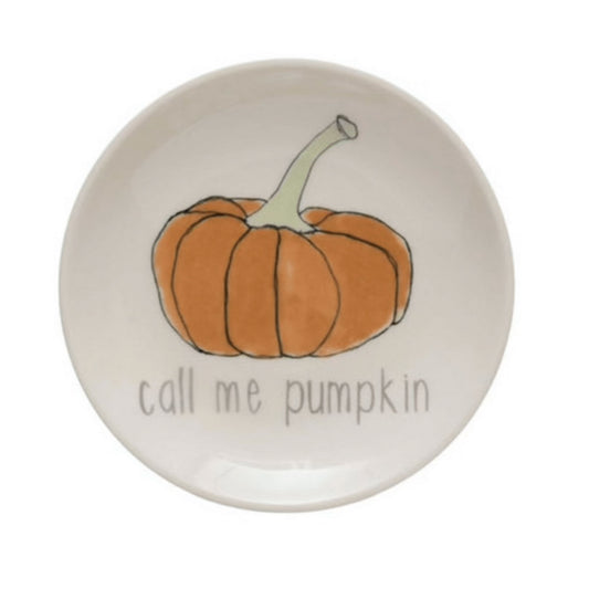 Creative Co-op Stoneware Plate with Thanksgiving Phrases - 5"
