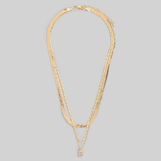 Fame Assorted Three Layered Cz Charm Chain Necklace