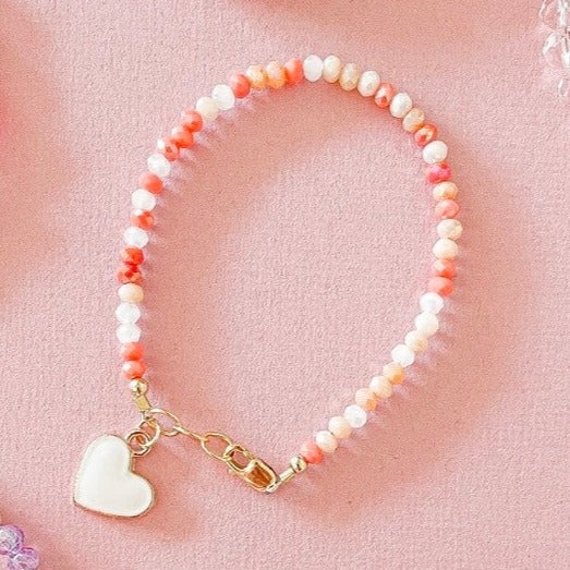 LittleLundsCo Baby Bracelet - Pink Coral Mix with White Heart Charm