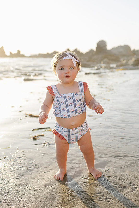 Mebie Baby Block Print Floral Ruffle Bikini Set