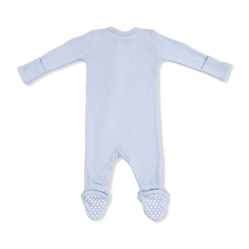 Buttery soft and thoughtfully designed, this Signature 2 Way Zipper Footie in Solid Niagara Mist Rib makes changes quick and keeps baby cozy day and night. Crafted from super soft ribbed modal with just the right amount of stretch, it’s an everyday essential with elevated comfort.