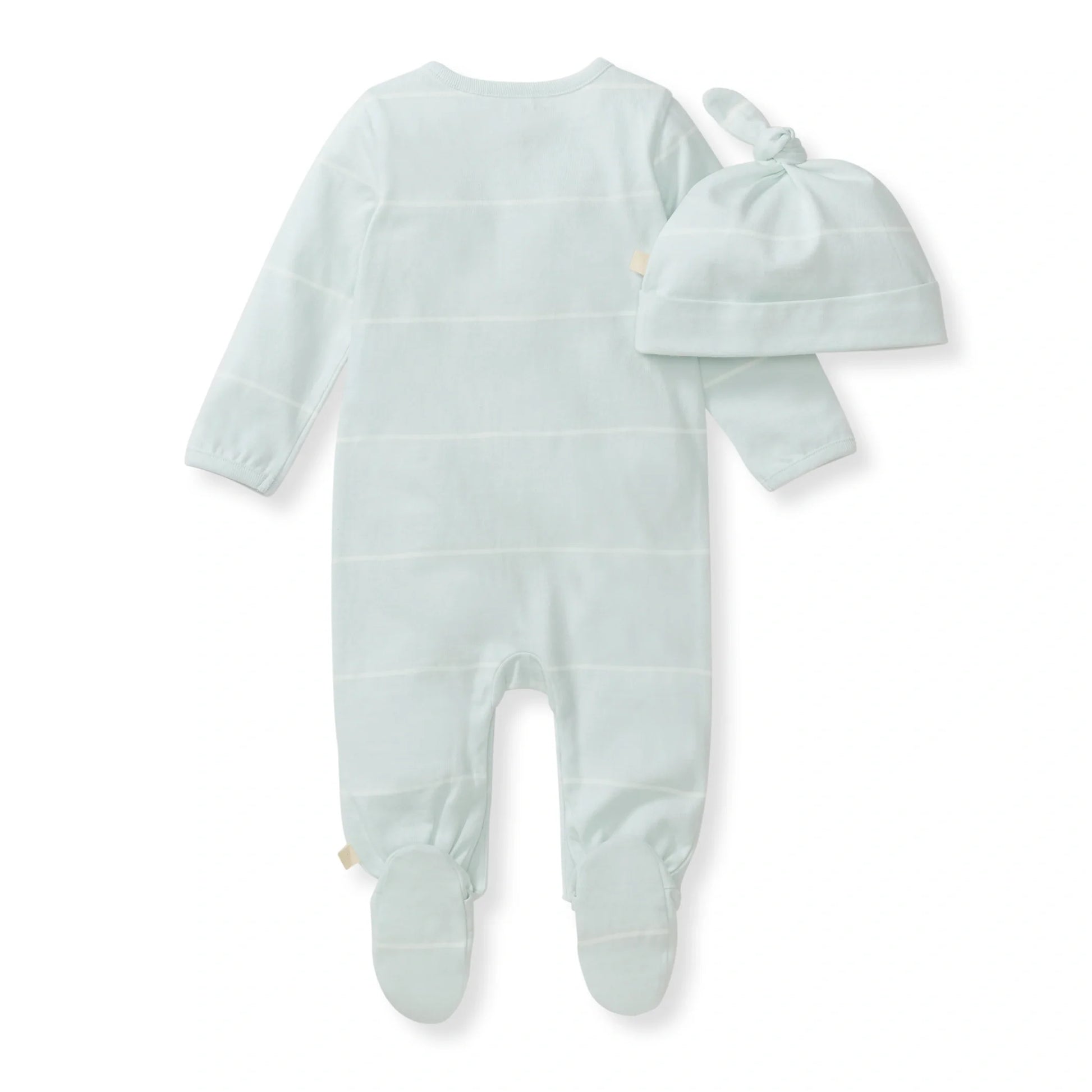 Wrap baby in cozy charm with this sweet blue striped set made for everyday adventures, snuggles, and playtime fun. The soft jumpsuit pairs perfectly with a matching knot-top hat for an effortlessly adorable look.