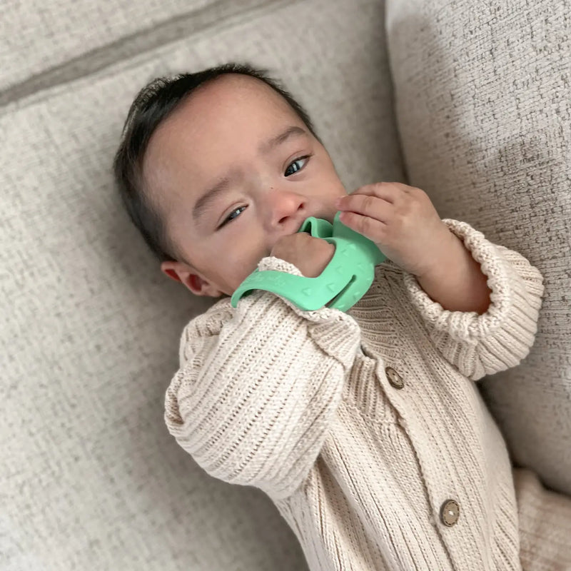 Chew on this—teething relief is officially in hand. The Bitzy Grip™ is a developmental wrist teether designed to work with baby’s natural grasp reflex while delivering soothing comfort through every stage of teething.